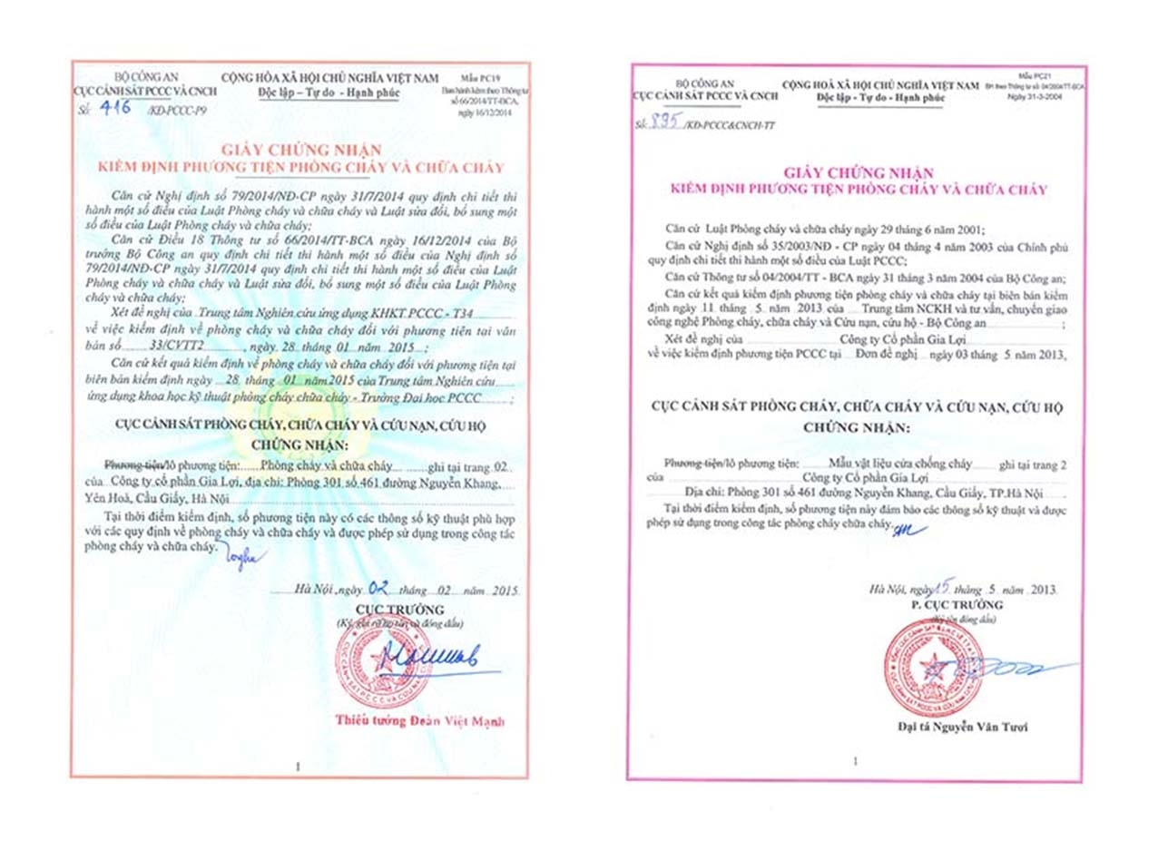 CÔNG TY CỔ PHẦN GIA LỢI • Địa chỉ: Phòng 301 số 461 Nguyễn Khang, Cầu Giấy, Hà Nội • VPGD: Km4 Phan Trọng Tuệ, Thanh Liệt, Thanh Trì, Hà Nội • Nhà máy: KCN Phú Nghĩa, Chương Mỹ, Hà Nội • Điện Thoại: 024.3564 2109 - 0973348699 • Fax: 024.3564 2307 • Mã Số Thuế: 0 1 0 2 6 8 3 8 3 8 • Email: gialoijsc@gmail.com ; gialoiglass@gmail.com • Website: www.gialoi.vn ; www.kinhchongchay.vn • Tài khoản số: 170014851007177 tại Eximbank, Ba Đình, Hà Nội. SẢN PHẨM SẢN XUẤT & KINH DOANH 2021 • Sản xuất kính chống cháy, vách kính chống cháy, cửa kính ngăn cháy • Sản xuất kính kháng khuẩn, vách kính kháng khuẩn, cửa kính kháng khuẩn • Cắt mài, gia công gương trang trí, kính hộp TÍNH NĂNG, ỨNG DỤNG CỦA SẢN PHẨM: * Sản phẩm kính ngăn cháy có thời gian chịu lửa 45- 120 phút, sử dụng trong công tác phòng cháy và chữa cháy cho nhà cao tầng, bệnh viện, trường học, nhà máy, văn phòng, kho lưu trữ... * Sản phẩm Kính kháng khuẩn tiêu diệt 95-99% các loại vi khuẩn trong vòng 24 giờ tiếp xúc, sử dụng để ngăn ngừa sự phát tán, phát triển của nấm và vi khuẩn giúp phòng ngừa nhiễm trùng chéo tại các bệnh viện, phòng mổ, phòng sạch... CAM KẾT CỦA GIA LỢI: • Chất lượng sản phẩm phù hợp theo TCVN, QC của Bộ, Ngành. • Giao hàng đúng thời gian, chất lượng, số lượng, địa điểm theo hợp đồng. • Dịch vụ bảo hành tận tình, chu đáo. Video 1: thử nghiệm kính GIALUKI, kính trong suốt, cường lực, chống cháy, chống bức xạ nhiệt